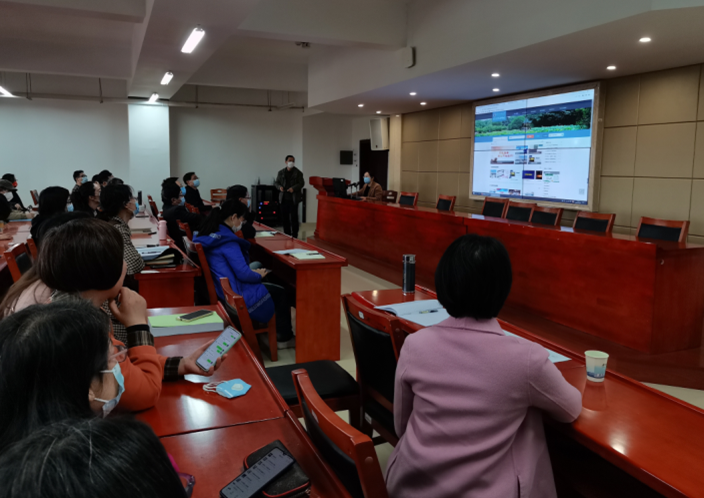 2022年3月29日,”‘一平三端’助力打造混合式智慧课堂“教学研讨培训会在立言楼四楼会议室举行,讲座由邓桂英老师主讲,教务处副处长贺玲、人文学院领导及全院教师参加了培训。
