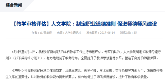 编者按:根据湖南省教育厅《湖南省普通高等学校本科教育教学审核评估实施方案(2023—2025年)》通知要求,教育厅将于2023年对我校本科教育教学工作进行审核评估。学校各相关部门、教学院围绕本科教育教学工作,结合审核评估工作要求进行了充分准备,系统总结提炼本科教育教学工作目标定位、体系设计、质量保障、学生发展等相关工作。为进一步展示我校本科教育教学工作,审核评估领导小组办公室开设《本科教育教学审核评估工作巡礼》专栏,将持续分享各部门、学院在本科教育教学工作中的举措与成效、特色与优势、问题与挑战,共同推动本科教育教学工作高质量发展。