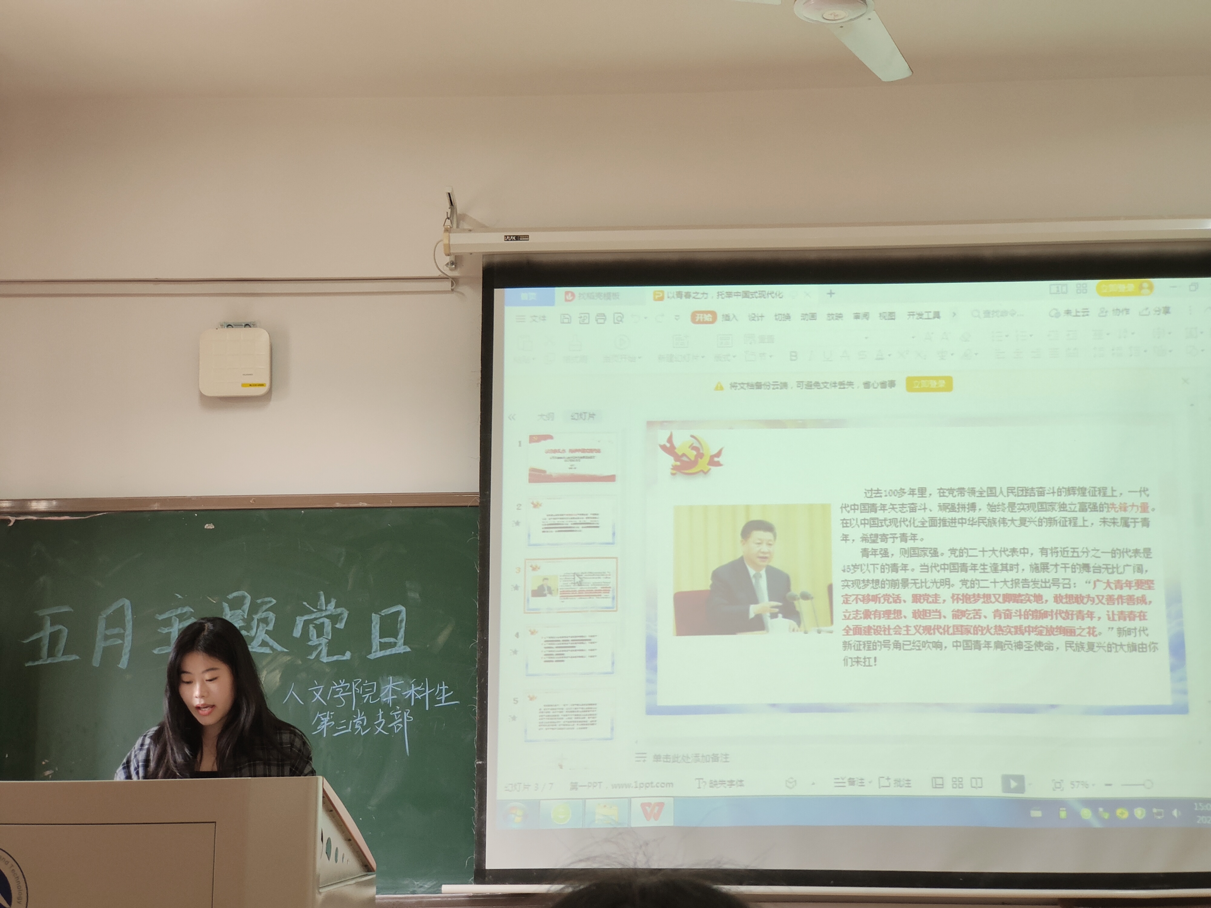 人文学院本科生第三党支部预备党员那金同志在会后发表了自己感想,她说到:“观看了万步炎教授的先进事迹之后,他敢于创新、敢为人先的拼搏进取精神让我非常敬佩,作为一名预备党员,我要向万教授学习,在自己的专业领域上,为共产主义事业奉献自己的力量。”