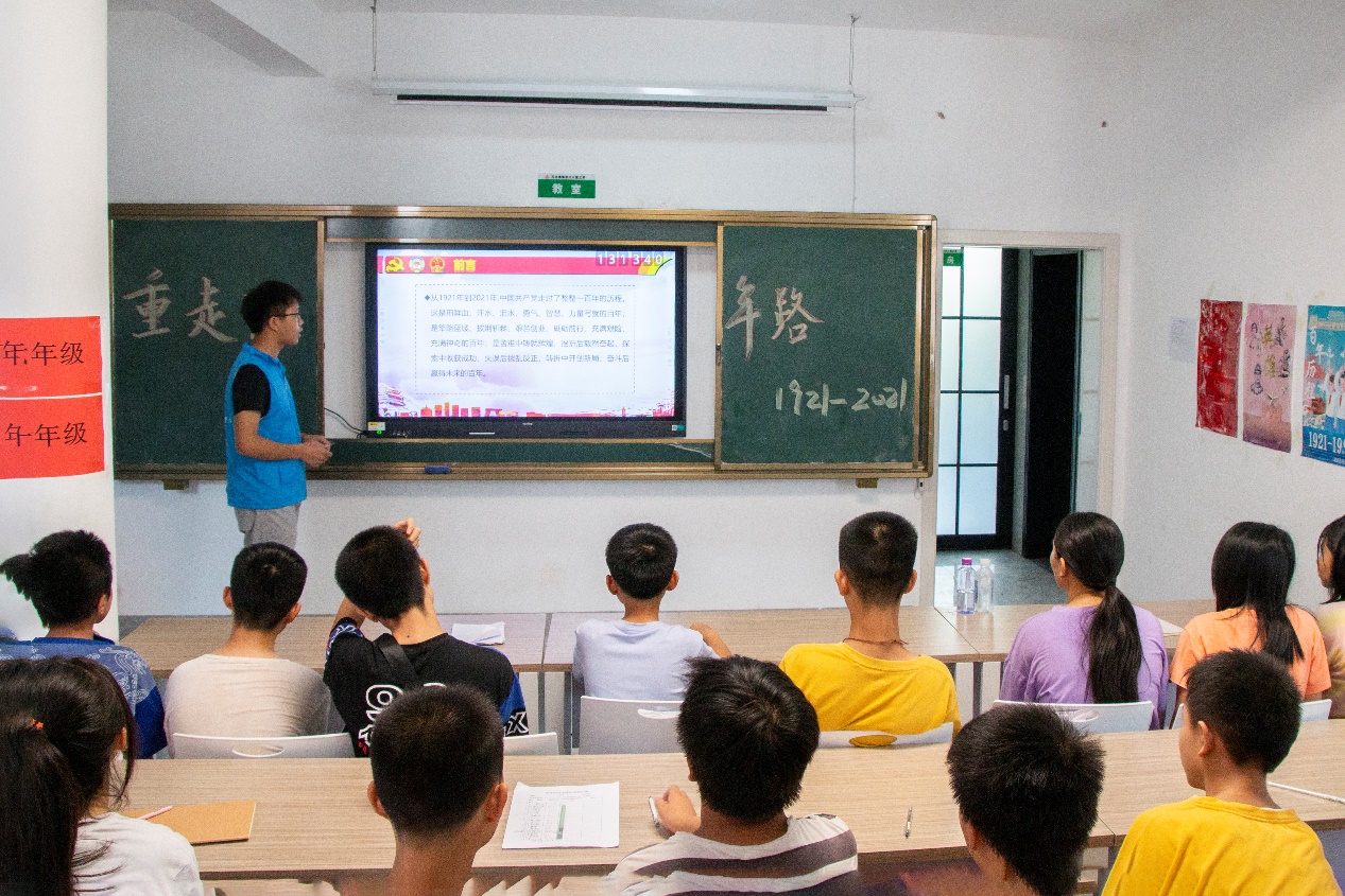 为了让党史学习教育走进留守儿童课堂,7月15日下午,湖南科技大学人文学院暑期“三下乡”社会实践团队带来一堂以“学党史、强信念”为主题的党史宣讲课。志愿者龙子尧邀请夏昭炎教授为孩子们讲述党史,引导他们走近党、热爱党、拥护党。