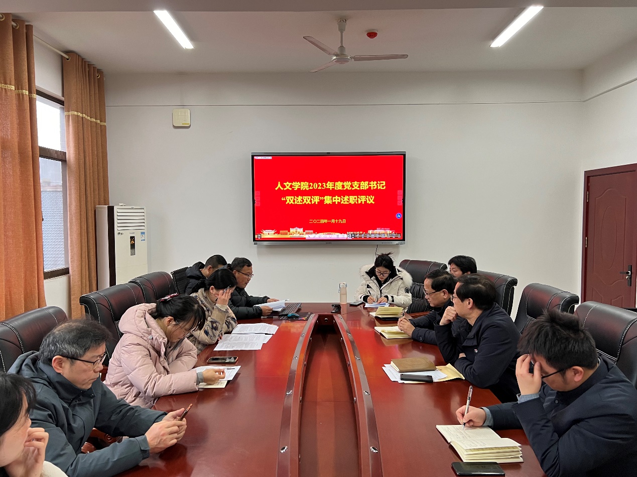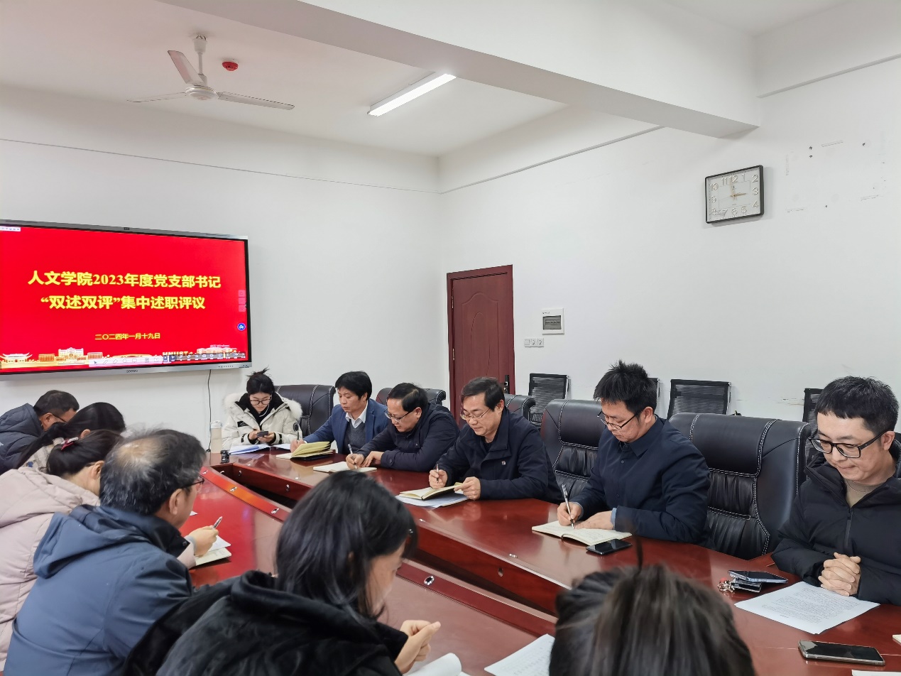 1月19日上午,人文学院在立言楼B505会议室召开了2023年度党支部书记现场述职会议。我院党委书记曾志东出席会议,全体党委委员,各支部书记及党员代表同志参加会议,副书记罗振军主持会议。
