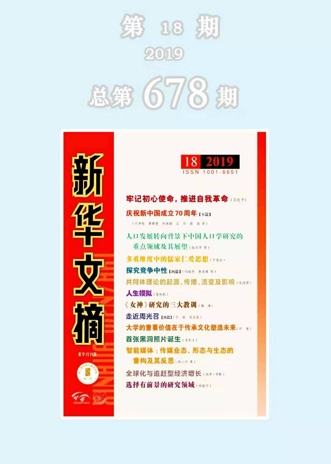 近日,《新华文摘》2019年第18期主体转载我院魏建教授论文《〈女神〉研究的三大教训》,此论文也成为该期文摘的封面文章。