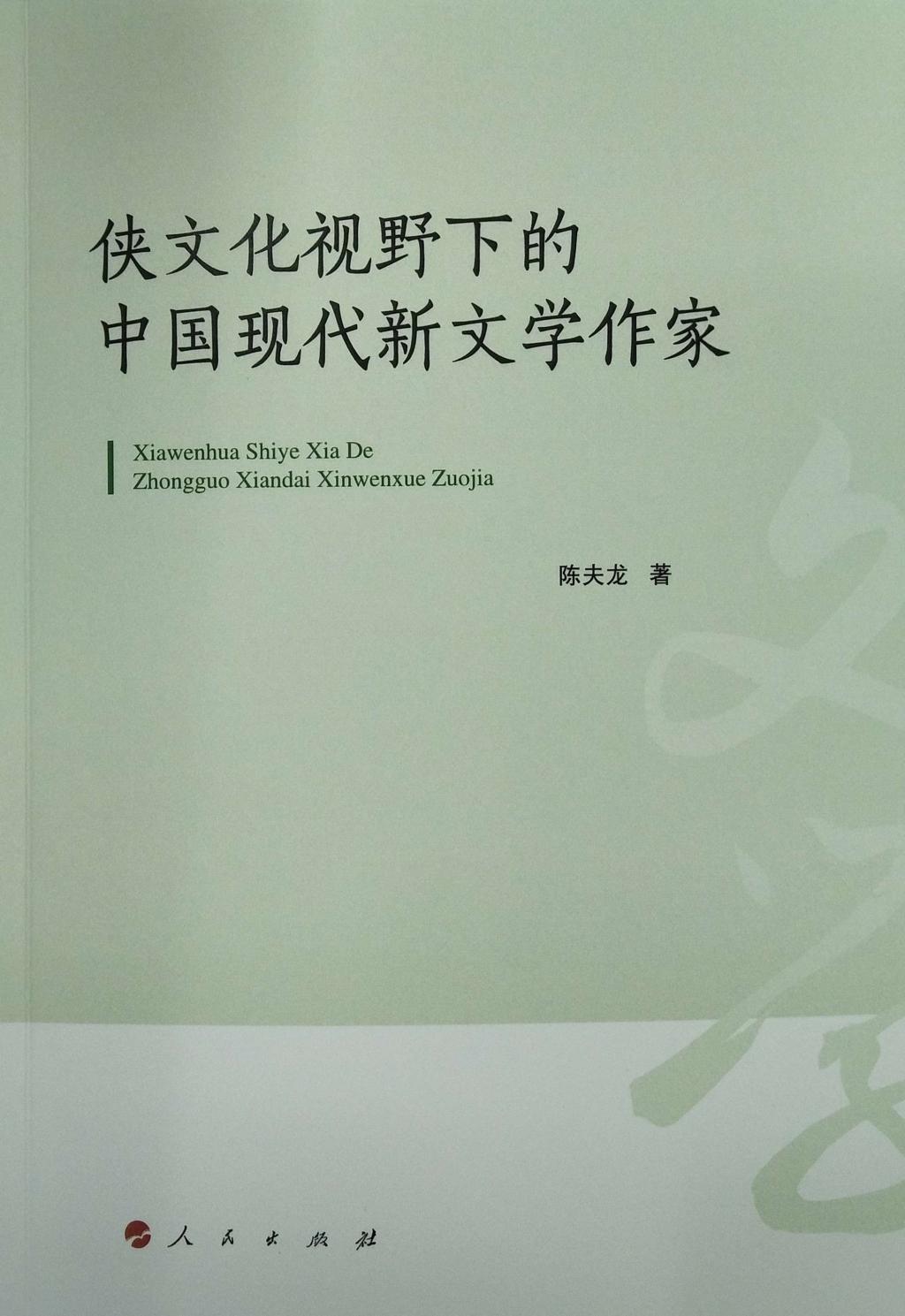 我院教师陈夫龙新著《侠文化视野下的中国现代新文学作家》于2019年10月由人民出版社出版发行。该著为山东省一流学科山东师范大学文学院中国语言文学学科建设经费资助成果。