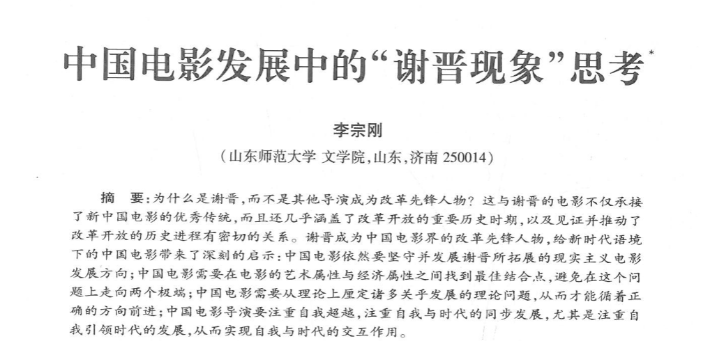 论文指出,谢晋被授予“改革先锋”称号并没有在学界引起特别关注,对此,论文认为将谢晋作为一种现象加以研究,既是对这位电影界先锋人物的重新认识,也是对其在中国当代电影发展中所作贡献的总结,或许能够给新时代语境下的中国电影带来某些规律性的启示。论文认为,谢晋的电影不仅承接了新中国电影的优秀传统,而且还几乎涵盖了改革开放的重要历史时期,见证并推动了改革开放的历史进程。谢晋成为中国电影界的改革先锋人物,给新时代语境下的中国电影带来了深刻的启示:中国电影依然要坚守并发展谢晋所拓展的现实主义电影发展方向;中国电影需要在电影的艺术属性与经济属性之间找到最佳结合点,避免在这个问题上走向两个极端;中国电影需要从理论上厘定诸多关乎发展的理论问题,从而才能循着正确的方向前进;中国电影导演要注重自我超越,注重自我与时代的同步发展,尤其是注重自我引领时代的发展,从而实现自我与时代的交互作用。