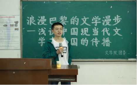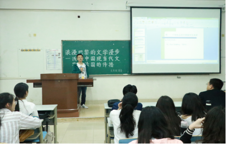 4月18日,文学院于长清湖校区综合教学楼C区207教室举办“浪漫巴黎的文学漫步——浅谈中国现当代文学在法国的传播”讲座。本场讲座由文学院特邀博士、文学院讲师彭冠龙担任主讲人,文学院副院长张丽军担任主持人。文学院党委副书记巩固、2017级辅导员李嘉琦与2017级百余名学生到场聆听。