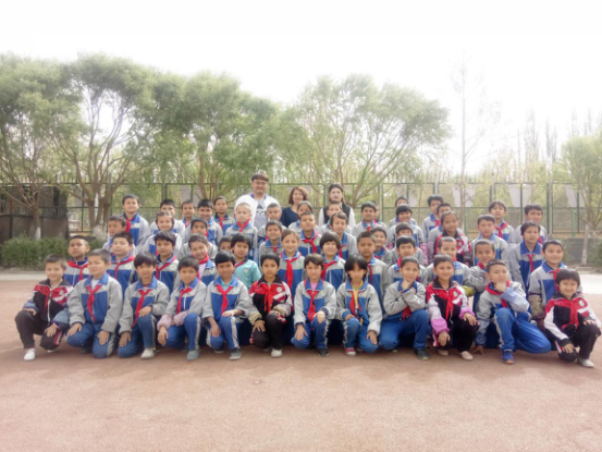 (武冕与英吉沙县第一小学三年级1班老师学生合影)