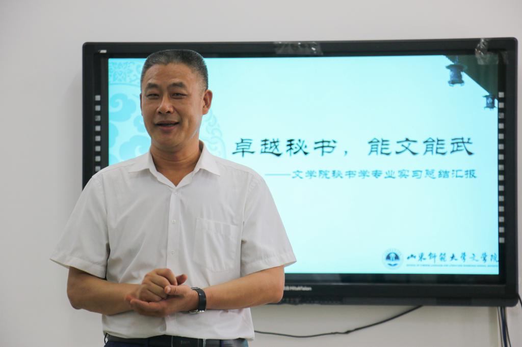 7月5日下午,文学院秘书学专业实习总结大会在长清湖校区A区文学院会议室成功举办,出席此次会议的有文学院院长杨存昌,文副院长邹强,秘书学专业负责人顾广梅和秘书学教研室全体老师。2015级秘书班的同学们参加了实习交流。