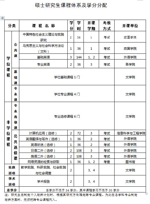 我校硕士研究生课程实行学分制,课程学分不少于30分,另实践活动、学术活动各2学分,课程分为学位课程和非学位课程,具体结构为: