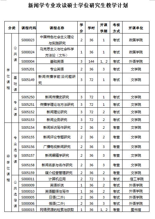 7.实践活动:实践活动包括教学实践、科研实践、社会实践与社会调查等。本专业硕士研究生于第二学年安排4周时间去新闻单位从事新闻采编工作。实践期间必须发表2篇以上的新闻报道或新闻评论文章,或制作并播发1―2个广播或电视新闻节目。实践结束须请所在实践单位写出鉴定。成绩合格者记2学分。