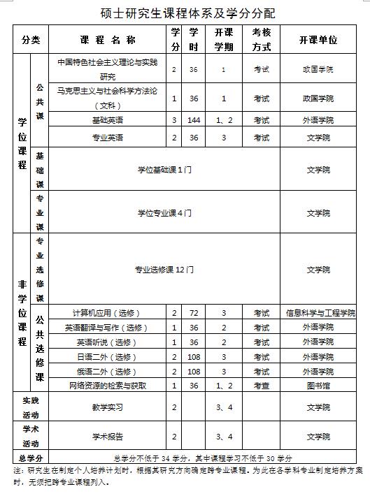 我校硕士研究生课程实行学分制,课程学分不少于30分,另实践活动、学术活动各2学分,课程分为学位课程和非学位课程,具体结构为: