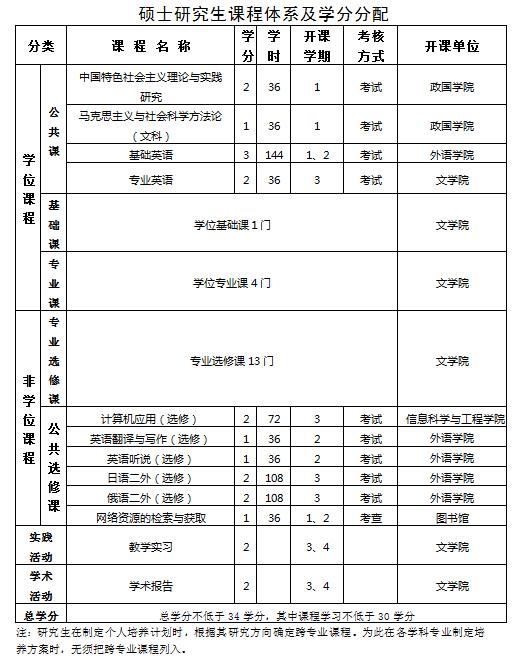 我校硕士研究生课程实行学分制,课程学分不少于33分,另实践活动、学术活动各2学分,课程分为学位课程和非学位课程,具体结构为: