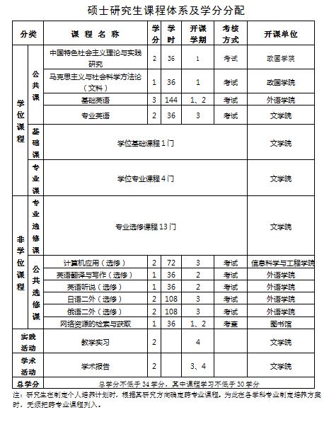 我校硕士研究生课程实行学分制,课程学分不少于30分,另实践活动、学术活动各2学分,课程分为学位课程和非学位课程,具体结构为: