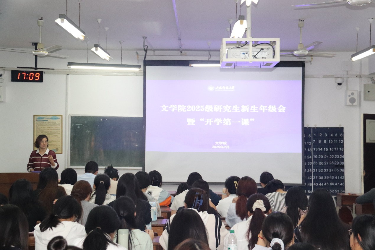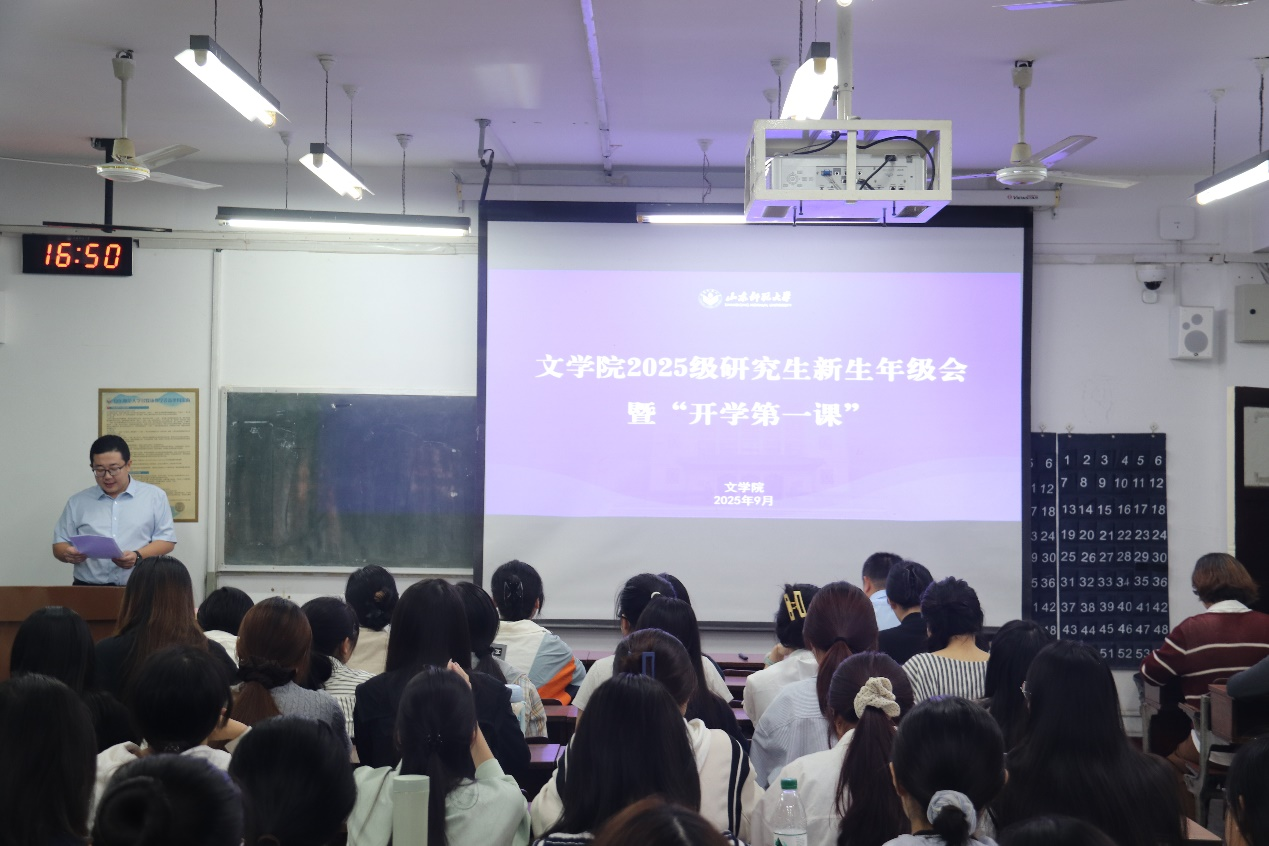 9月19日下午,文学院在千佛山校区教学三楼3315教室召开2025级研究生新生年级会。会议由学院研究生教学秘书段新莉、研究生辅导员张海洋主讲,2025级全体博士、硕士研究生参加。