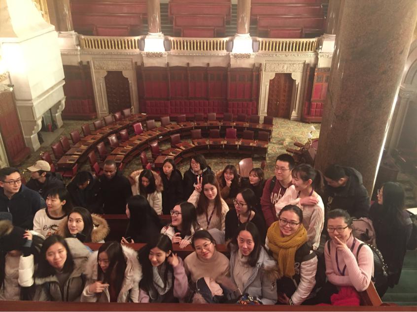 在充实的日程中,同学们还一起参观了New York state Capitol,纽约州议会大厦,1899年建成,是当时最昂贵的政府大楼。最初的建筑师富勒是一位英国人,一楼是古典罗马风格的建筑,后来在文艺复兴时期的古典风格中建了下两层,在外部两层明显是明亮的柱子。立法会议厅,四楼和屋顶工作全部用罗马式完成。中央的开放式球场由一个旨在支撑一个巨大的圆顶的竖井支配。别具特色的建筑风格吸引了同学们的目光,在这里我们也感受到不同时期历史、建筑风格的交汇与交融。