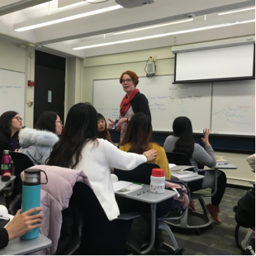 首先,是讲授American History 课程的Rebecca教授。Rebecca是一位来自加拿大的二代美国移民。对她的第一印象就是:一个中规中矩的西方女子,她就像我在欧美剧影中见到的中青年女性一样,身材高挑、碧眼金发、五官立体、性格温和,同时还有来自学者身上所独有的严谨认真。在带领我们学习美国历史的过程中,Rebecca常常作为亲历者来加以例证。特别是在讲到美国的移民政策时,更是让我们深刻认识到了在高举“民主”、“自由”、“平等”大旗的美国在对待移民时的残酷政策——亲人骨肉的分离、公民基本权利的剥夺等等。而Rebecca在家族聚会中,则常常被家人以“She is an American,she is different from us”(她是美国人,跟我们不一样)来调侃。虽然提及此处的时候,Rebecca是微笑的,但我分明从中感受到了几分无奈。在如此无情的移民制度下,世间最可贵的亲情都变得虚渺,这无疑是每个亲历者内心无可名状的悲凉吧。并且,Rebecca清晰而慢速的英语发音使得全英文的课堂并不那么难以理解,反而变得通俗有趣。温婉低调又踏实理性的Rebecca成为了大家心目中的新晋“女神”,得到了大家的一致好评。