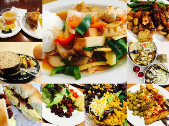 奥尔巴尼大学的餐厅一共有5个,每个宿舍区都有一个独具特色的自助餐厅,只需要12刀便可以尽享美食——披萨、各式汉堡、饮料、沙拉、炒菜、甜品、水果……;中心教学区还有一个综合性餐厅,除了各式各样的菜品,像越南菜、日本料理、中国盖浇饭、泰式卷饼、美式炸鸡、三明治等,还有518超市、星巴克、Bookstore等。而,最合胃口的就是蔬菜沙拉和三明治、热狗,但是沙拉真的是最不划算的,而肉类的餐品永远是“只有装不下,没有不想给”的大方!但是,火鸡肉真的“睹肉思源”难以下咽。而且,奥尔巴尼大学的餐厅食物后面都显示卡路里,这给有特殊热量控制的人员提供了便利,可以说十分人性化了;并且,所有的餐厅都给了大家充分自由选择的权利,几乎所有的食物都可以自由搭配,甚至于调味剂、蘸酱都是自由选择添加,而不像国内都有固定的套餐,也充分显示了这个国家的自由。餐具(自助餐厅除外)都是一次性使用,确保了卫生整洁。