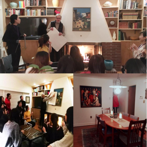 其次,是讲授American Film & Art课程的Claire教授。与Rebecca截然不同的是,Claire身上那股特立独行的洒脱劲儿!与Claire相识,还是在赴美第二天的迎新早餐上,她坐在我的旁边,席间与我们侃侃而谈,关切我们的生活习惯、爱好,并向我们一一介绍餐桌上地道的西方美食料理。与Rebecca的谦逊内敛相对照,Claire显得更具“西方性”——洒脱、率性、向往自由。于是,善于讲故事的Claire在第一堂课向我们讲述地球由来时,情至深处便索性脱了鞋子,足踏大地,极尽表演之至。Claire极富张力的表演,让所有同学为之动容。虽然年近花甲,Claire仍旧坚持骑行,下午的课她经常是头戴安全盔,骑着山地车直“冲”进教室里上课,风风火火、热热烈烈!而Claire上课时稍快的语速,也让大家“苦不堪言”,但率性坦诚的Claire也给了大家不一样的课堂体验。