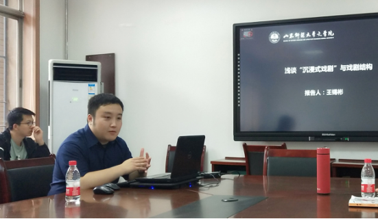 5月17日下午,由党委研究生工作部主办,文学院承办的研究生“治学·修身”学术论坛在千佛山校区教学三楼3141教室举办。2016级美学专业硕士研究生王锡彬担任主讲人,为大家带来“浅谈‘沉浸式戏剧’与戏剧结构”主题讲座。文学院周均平教授与文艺学、美学等专业硕士研究生出席并聆听。