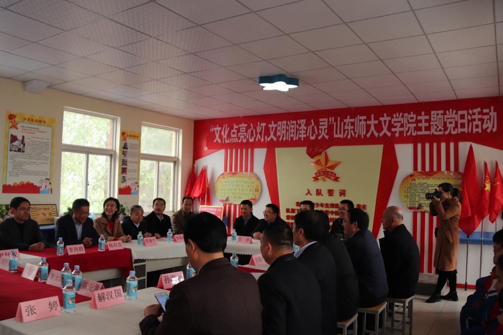 为丰富学院党建工作形式和内容,进一步提升党员干部党性修养,强化服务社会意识和行动,探讨校地合作新途径,加快学科建设新旧动能转换进程,促进学院着力新型智库建设,推动“大学习、大调研、大改进”工作深入开展,学院党委组织开展了“传播传统文化,调研地方文明”主题党日活动,文学院党委成员、党支部书记一行15人赶赴菏泽市东明县,在当地我校省派第一书记的配合下,深入当地学校、企业、文化产业机构,引入社会资助、调研当地需求,开展合作研讨,在实际工作的开展中,体现和展示共产党员素养,发挥党组织的凝聚力和领导力。