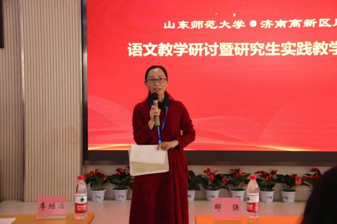 随后,文学院副院长邹强简要介绍了山东师范大学及文学院的发展历程以及师范教育特色,指出今后文学院仍会坚定“立德树人”的初心,下大气力抓好学位点建设和研究生教育;同时加强高校教育与基础教育的沟通,为专业硕士创造更好的实践教学机会,回馈基础教育,促进共同发展。