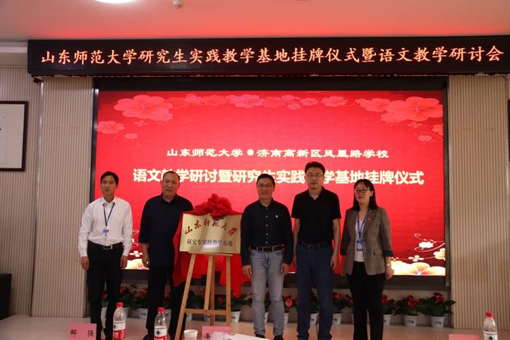 5月19日下午,“山东师范大学研究生实践教学基地”挂牌仪式暨语文教学研讨活动在山大附中凤凰路学校举行,文学院副院长邹强、博士生导师潘庆玉、济南高新区教研室主任李继冶、山大附中凤凰路学校校长王兆贞出席,山大附中基础教育集团中小学语文教师、文学院学科教学(语文)专业以及课程与教学论专业研究生参加了这次活动。