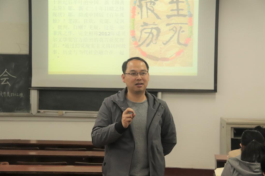 为开拓文苑学子视野,提高文学素养,3月19日晚,文学院于千佛山校区教学三楼3302教室举办《生死疲劳》读书交流会。交流会由2018级中国语言文学类2班班主任祁春风主持,文学院2017级、2018级部分同学到场参与讨论。