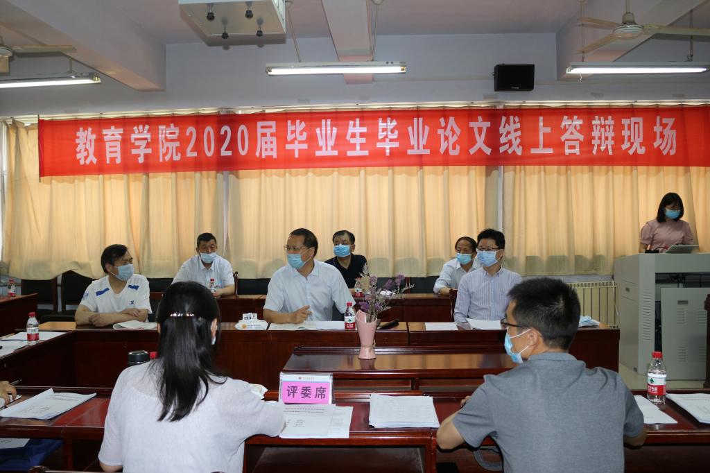 5月22日上午,教育学院2020届毕业生线上论文答辩在教育学院3楼各办公室顺利进行,校长黑建敏,副校长姚远峰在教务处处长邓德华、网络中心主任王立新的陪同下,来到了线上答辩现场,对答辩工作进行了全面了解,并进行了现场指导。