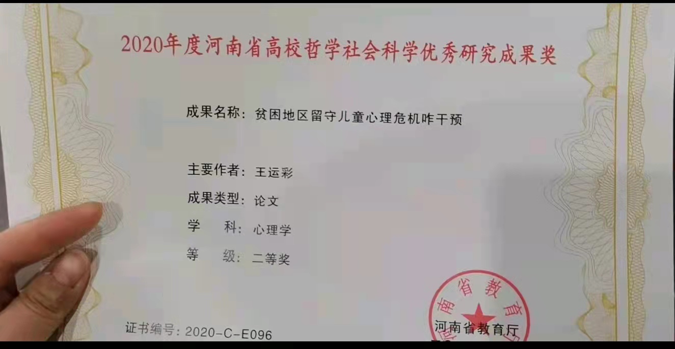 3. 高校哲学社会科学优秀研究成果奖(贫困地区留守儿童心理危机咋干预)