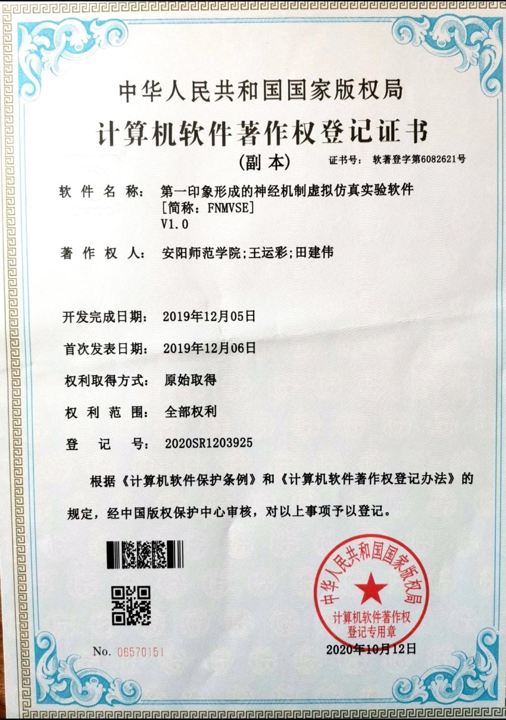 2. 软件著作权(第一印象形成的神经机制虚拟仿真实验软件)