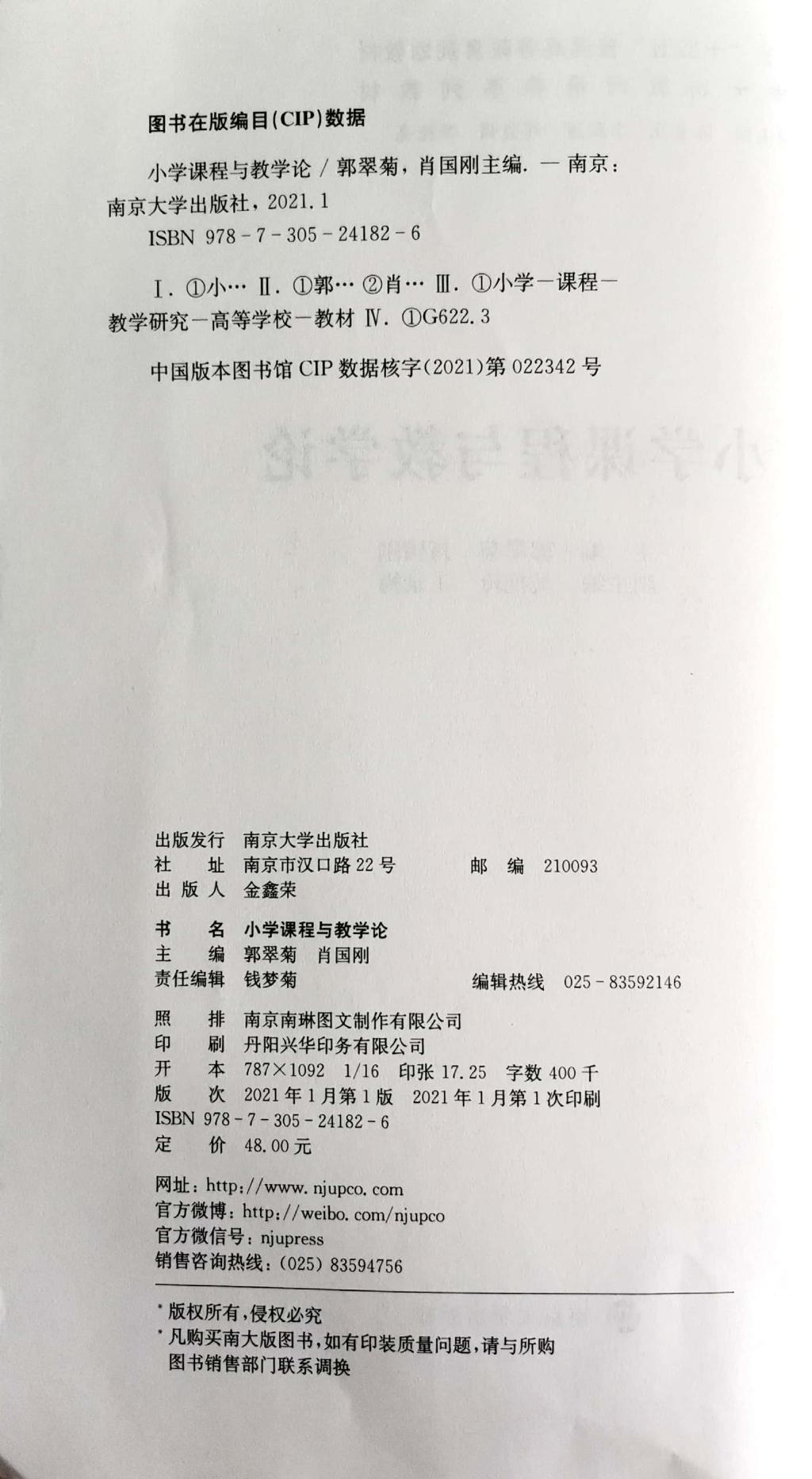 1.《小学课程与教学论》