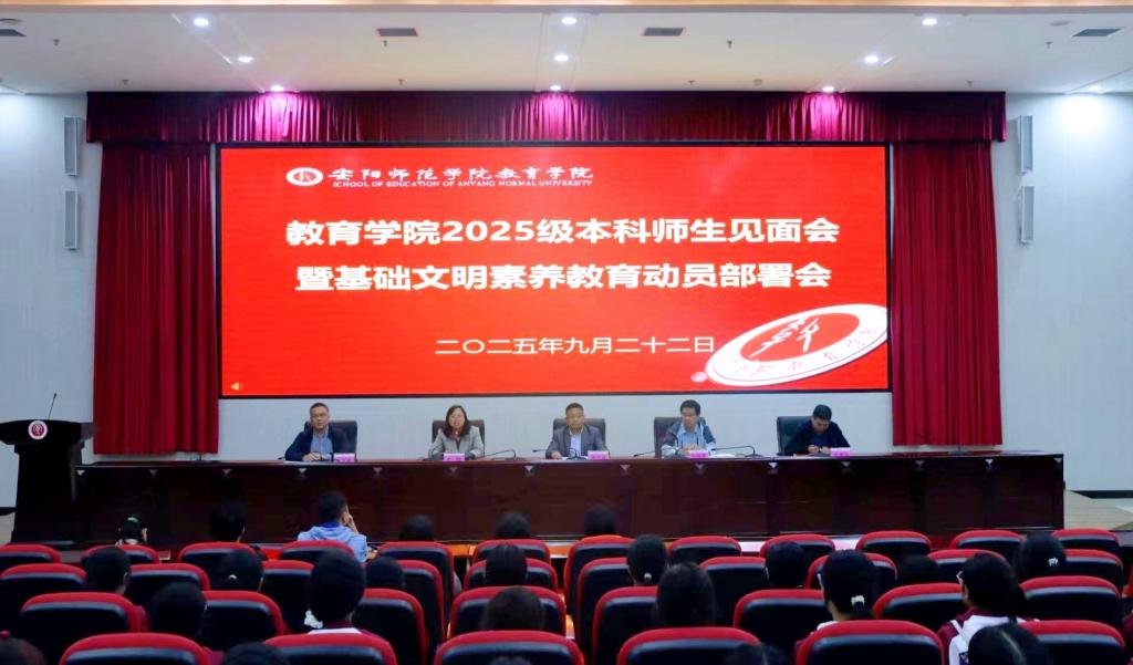 为帮助2025级本科新生快速融入大学,适应大学生活,科学规划学业发展。9月22日,教育学院在文博楼二楼会议室隆重举行师生见面会暨基础文明素养教育动员部署会。学院领导班子成员、各系主任、新生班主任、辅导员以及全体2025级新生共同参会。会议由学院党委副书记王佳主持。