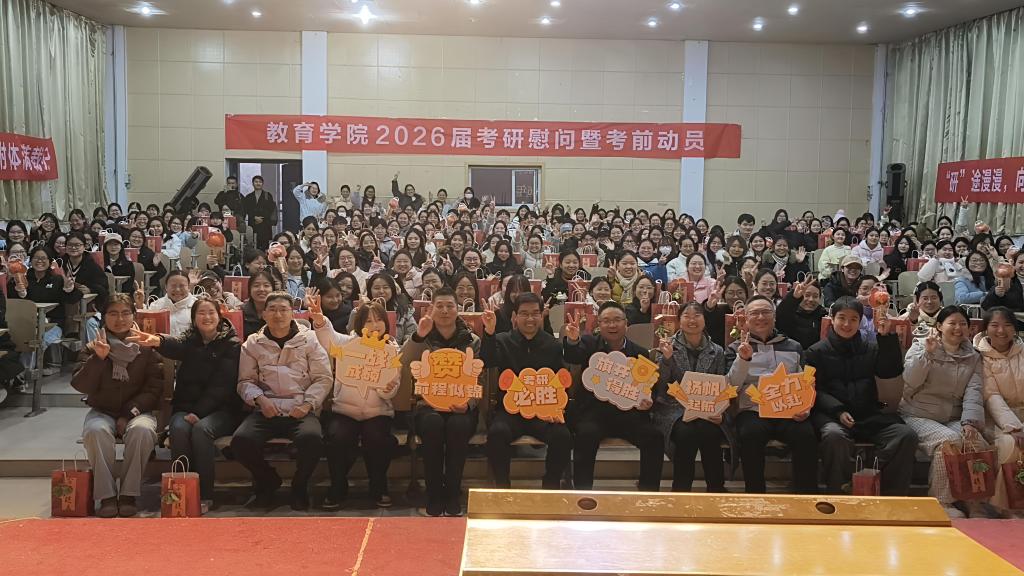 为助力2026届考研学子舒缓备考压力、调整备考心态。12月3日下午,教育学院在和展阶梯101教室召开2026届研究生入学考试考前动员大会。学院领导班子成员、毕业班辅导员及200余名考研学子参加活动,会议由学院党委副书记王佳主持。