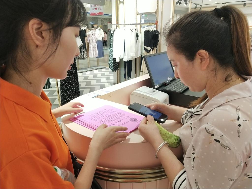 下午三点,团队成员在广场集合完毕并合影留念后,两人一组,开始了今日的实践活动——发放《甲骨文小知识》的宣传页,此次活动一方面为了加深广大市民对甲骨文文化的了解,另一方面让市民关注团队抖音,从而加大林州甲骨文进课堂的宣传力度。在分发宣传页的过程中,队员们耐心向路人介绍甲骨文,将甲骨文的魅力展现给他们,让越来越多的人认识甲骨文,加入到宣传甲骨文文化的队伍中。