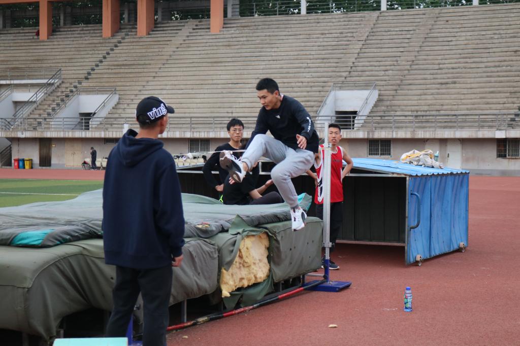 同学们在训练场地积极训练。