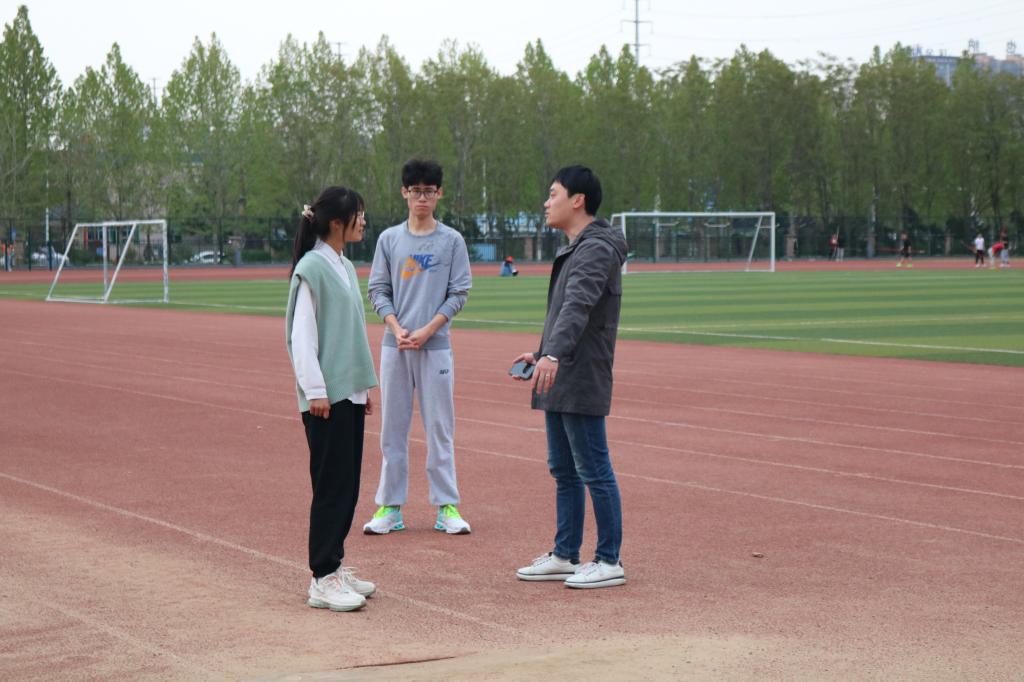 学工办主任杨丽娟、分团委副书记张鑫与2020级辅导员吴玲玲老师在为同学们加油鼓劲儿。