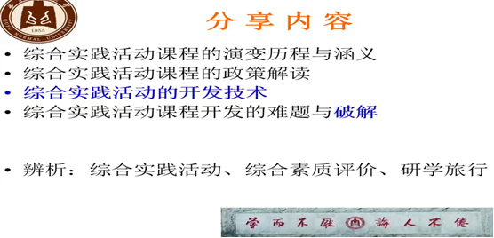 12月13日下午,我院有幸请来了曲阜师范大学的张雨强老师为大家讲述《综合实践活动的课程开发》,老师向大家说明了综合实践活动课程开发的重要性,我们需培养课程意识、关注教师和学生群体、理解课程开发阶段、注重课程目标内容实施评价,要有“取法乎上,仅得其中;取法乎中,仅得其下”的意识。