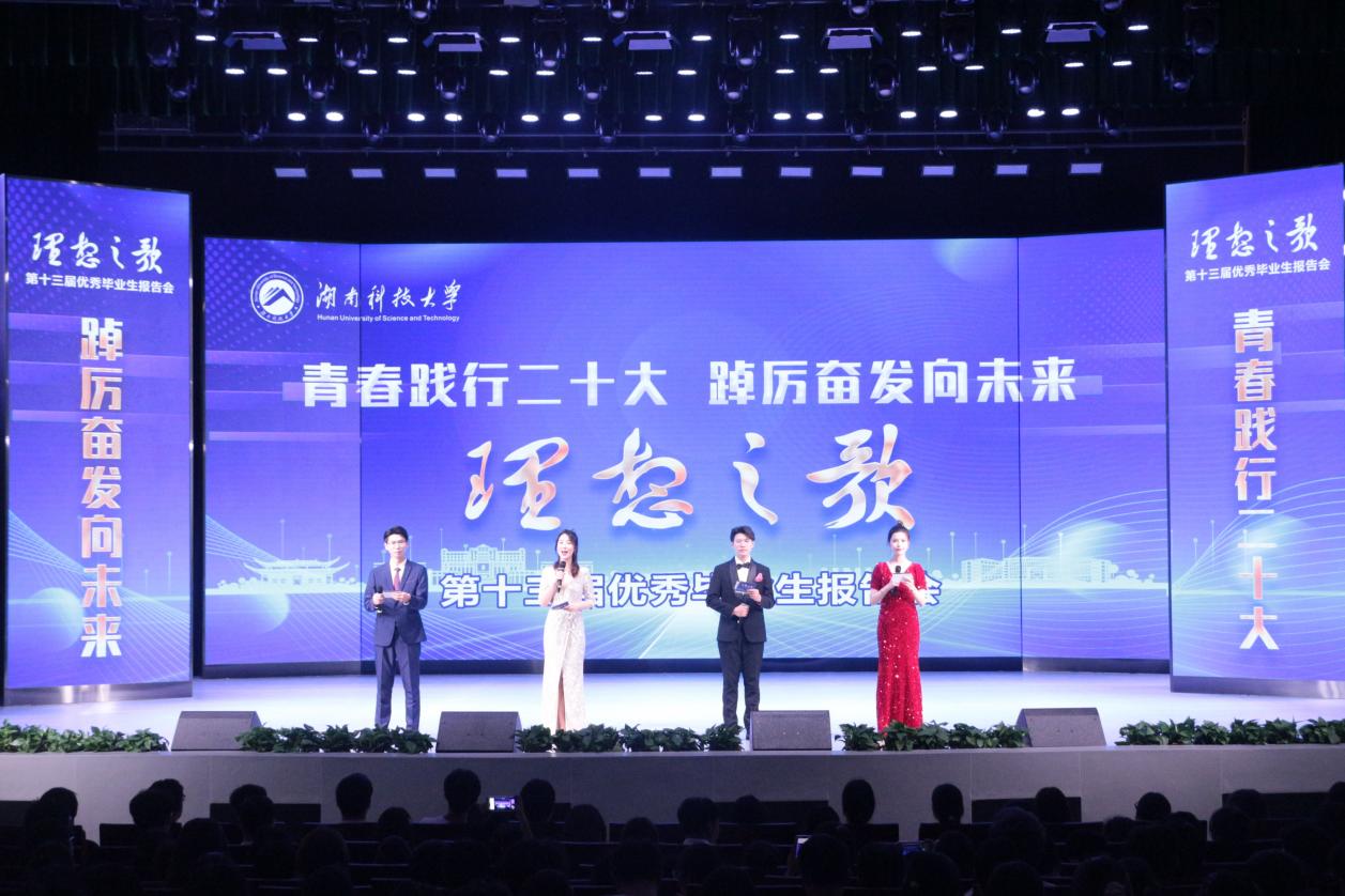 为了让同学们充分了解优秀学子的事迹,学习他们勇于追梦的精神,6月4日,由湖南科技大学招生就业处主办,人文学院承办的湖南科技大学第十三届“理想之歌”优秀毕业生报告会于黎锦晖音乐厅隆重举行。