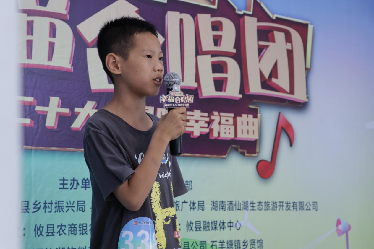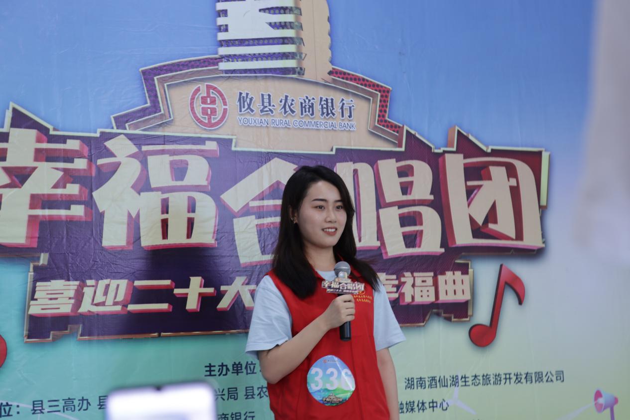 喜迎二十大,秀出攸洲美,7月15日,株洲市攸县石羊塘赛区“幸福合唱团”海选燃情开唱,选手336号杨舒鑫代表湖南科技大学人文学院暑期“三下乡”志愿服务团队参赛,并成功获得晋级资格。