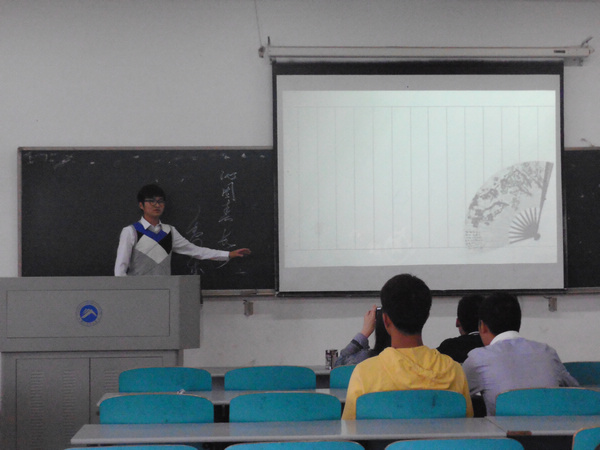 “同学们,虽然湘潭只有夏和冬两个季节,但是世界的其他地区还是有四季的。”来自12级鉴赏3班的钱子凡同学,讲课中不忘穿插诙谐幽默的话语,引起现场同学阵阵欢笑。随后,他细致地分析了《沁园春·长沙》中各个意象的含义,并结合时代背景,点明了词的主旨。使一个“独立寒秋”的身影深深印在了同学们的心里。
