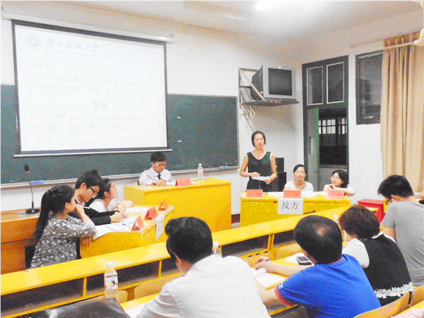 4月29日晚19时,十教313教室热闹非凡,由我校研究生工作部主办,我院研究生团委和研究生会承办的第一届研究生辩论赛初赛在此拉开帷幕。研究生工作胡斌梁副部(院)长,我院副院长彭在钦、院党委副书记颜柯、刘俪喆老师、学工办主任罗振军出席观战。辩论赛评委由我院研究生指导教师颜红菊教授、文学系主任刘郁琪副教授、新闻系孙际垠副教授、语言系李康澄老师和学工办成伟明老师担任。