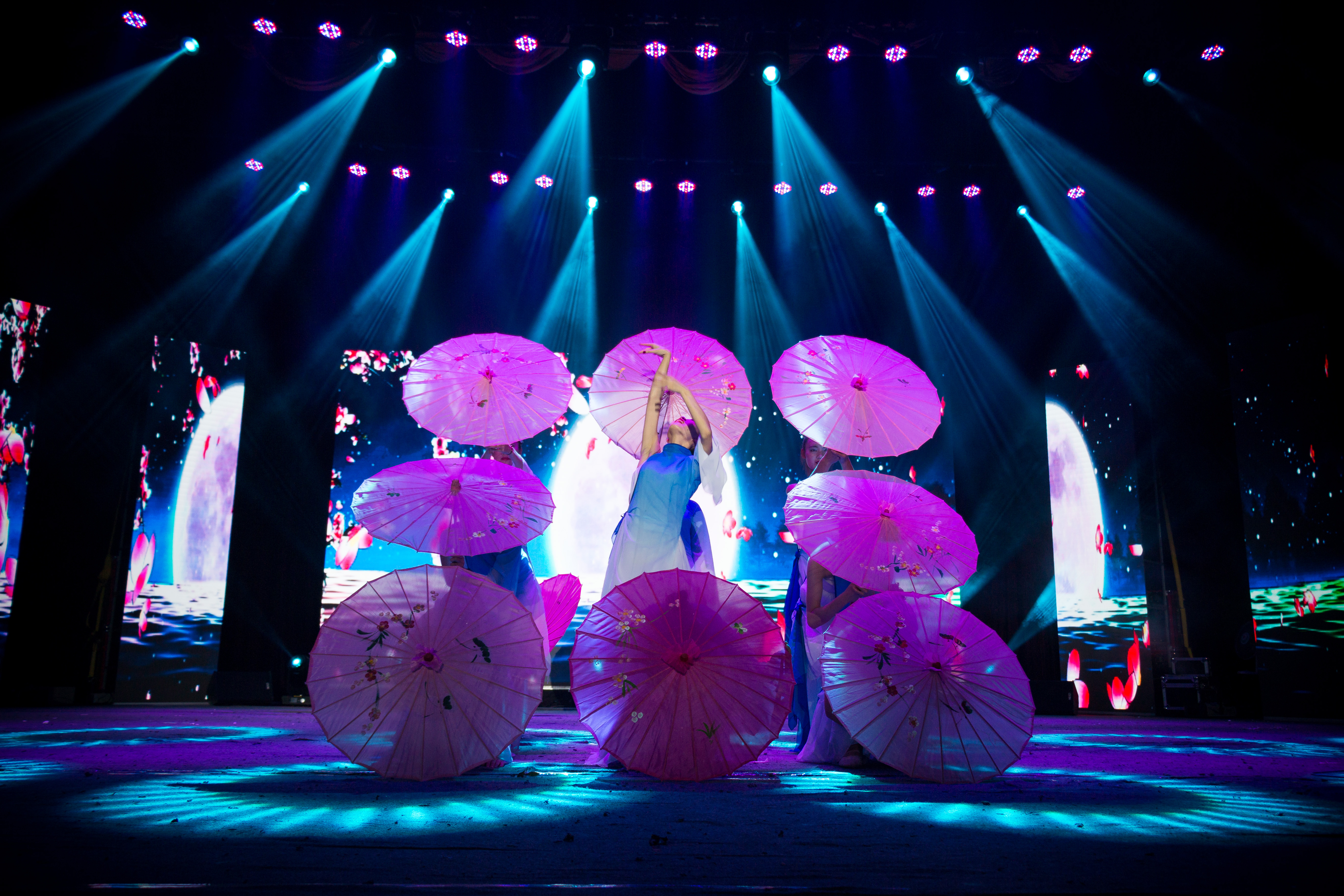 巧笑倩兮,美目盼兮,翩若惊鸿,婉若游龙,一举一动,莫不如从仕女图中走出的曼妙生姿的女子。十个倩丽的身影带来的古典舞《送别·韵》呈现在观众们的视线时,全场忍不住惊艳地欢呼尖叫,最终也渐渐被佳人们的含情舞姿打动,安静欣赏,沉沦其中。委婉的水袖、精致的油纸伞,仿佛依依诉说着江南水乡女子的婉转深情。彩袖殷勤捧玉钟,当年拚却醉颜红所说的古典江南水乡女子被诠释得淋漓尽致。
