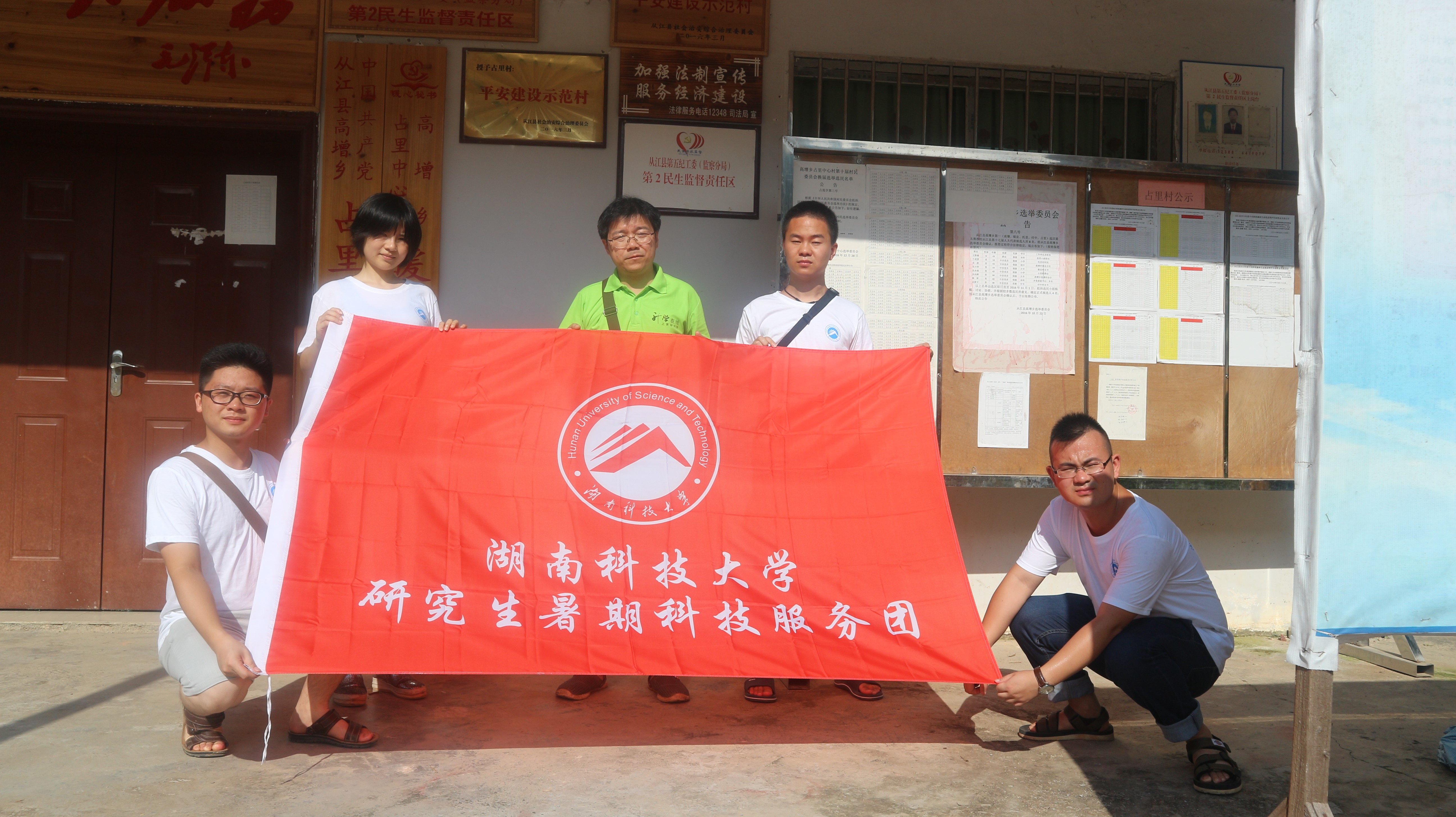 (图为人文学院研究生暑期科技服务团在占里村委会前合影)