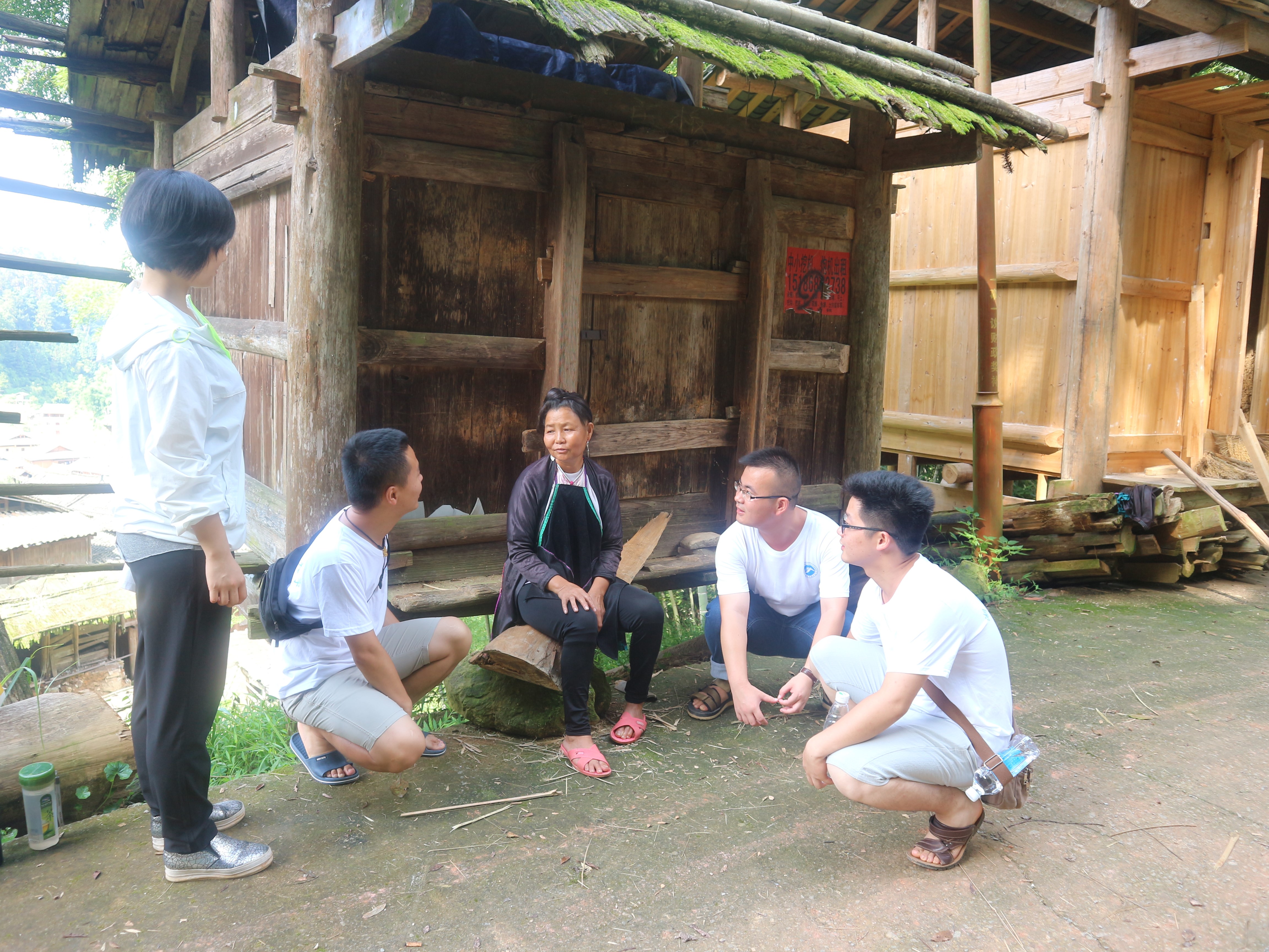 占里侗寨是一个绿山环绕、民族风情浓郁的美丽侗寨,村外层峦叠翠,门前小桥流水,一幢幢吊脚楼错落有致,鼓楼、风雨桥保留了古老风貌,令人流连忘返。由于强降雨,贵州大部分地区都遭遇洪水灾害,占里村通村公路也遭遇塌方。湖南科技大学服务团队黑夜冒雨来到占里村,中途遇到塌方路段,指导老师成伟明在确定塌方路段安全的情况下,主动带领研究生下车推车助力,稀泥染黄我们白色的队服。终归顺利在当晚九点到达占里村,开始对占里侗族村民进行访谈调研。