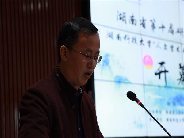 湖南科技大学副校长刘友金致大会开幕辞,他首先以其对今年十九大召开后感受到街头巷尾、从上至下对十九大精神的学习风气的现象,引出学术体系的创新,在加强人文知识与人文精神的学习培养,同时也应关注时事政治,注重培养跨界思维及创新能力的观点。他表示,“通过此次分论坛,希望不同高校、不同学院能相互交流,相互学习,弘扬敢于创新、良好协作的精神、以提升研究生的学术水平、推动高校人文学科创新改革,更好地促进文化传承传播工作,让中国文化展示出永久魅力和时代风貌。”