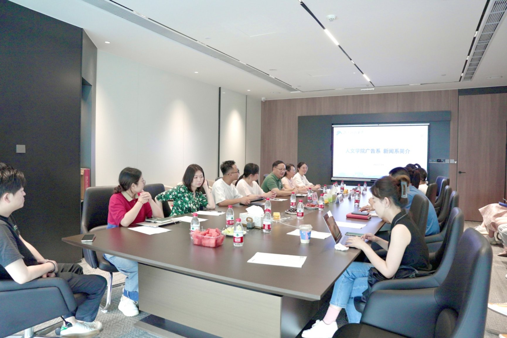 调研结束后,人文学院副院长袁星洁表示,此行加大了对行业发展现状的认识,增强了人才培养模式更新迭代的紧迫感。面对行业的日新月异,人才培养上必须应时而变,融入时代,超越时代,才能发挥高校的智力支撑作用。产学研合作上,必须强化互联网平台意识,广告、新闻要充分利用好企业后台,做足本身的前台功夫,前后台交融,共同探索产学研合作新路径。(曹佳骊 刘艳风 郭娟)
