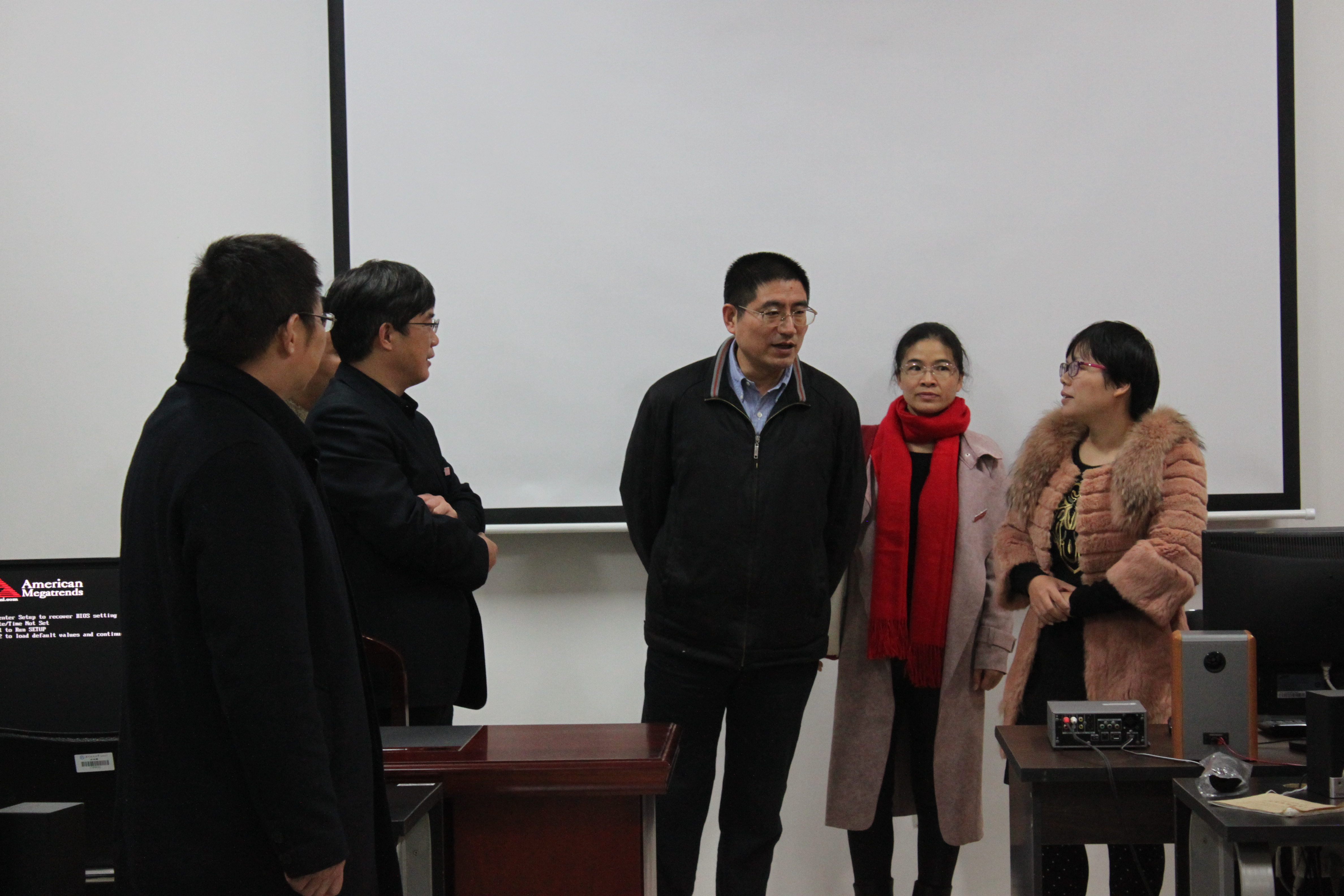 2017年11月28日上午,教育部评估专家江珩教授来到我院进行现场考察。我院党委书记廖加林以及院长刘奇玉、副院长聂志军一行人在立言楼外迎接,然后陪同专家考察了一楼A的教师工作室,三楼B学院的实验教学设施,五楼B的学院档案室。专家对学院的办学条件表示赞赏和充分的肯定。