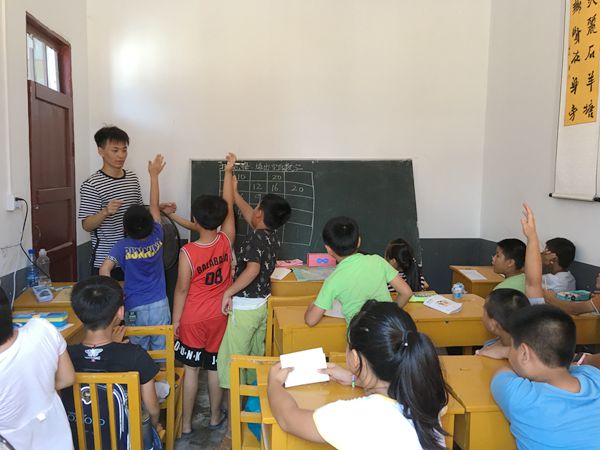 清晨,学生们陆陆续续的到达乡贤馆。“老师早上好,老师早上好!”向志愿者老师们问好的声音此起彼伏,一个个小天使笑的十分开心,对于他们来说上课并不是一件苦恼的事情,相反是假期最值得期待的事情。八点半,上课的哨声准时吹响。“同学们快进教室,上课啦……”志愿者林点一边吹哨,一边呼喊同学们进教室。作为团队的领头羊,林点身兼数职,既要充当打铃人,准时吹响哨声。又是老师,要教幼儿园的小朋友们数学。