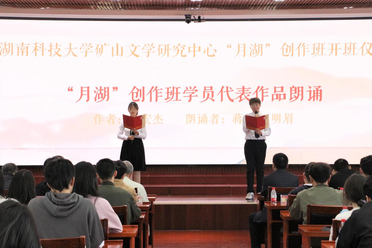 开班仪式上,周智华指出:“此次活动既是一次难得的学习契机也是重要的交流平台,这不仅有益于促进育人资源、提升我校人才培养质量,促进校园文化建设,同时有利于加强和拓展作家、读者和学者之间的交流,可以称得上是一次真正的文学盛会。”谭谈表示:“今天我们和你们聚在这里,是‘朝阳’和‘夕阳’的面对面,而月湖创作班正是你们的练军堂,希望你们可以抓住机会好好练习,未来可以成为一名英雄的作家。”吴投文在发言中传达了对创作班学员们的深切祝福,他表示,学校领导高度重视“月湖”创作班,在场的36位学员都是从人文学院脱颖而出的,“月湖”创作班将致力于强化学员的写作兴趣、提高学员的写作技能,让创作班全体学员成为现代化新型写作人才。仪式在创作班学员代表与怀化市会同县粟裕希望小学“田野诗班”四位小学生的朗诵声中圆满结束。