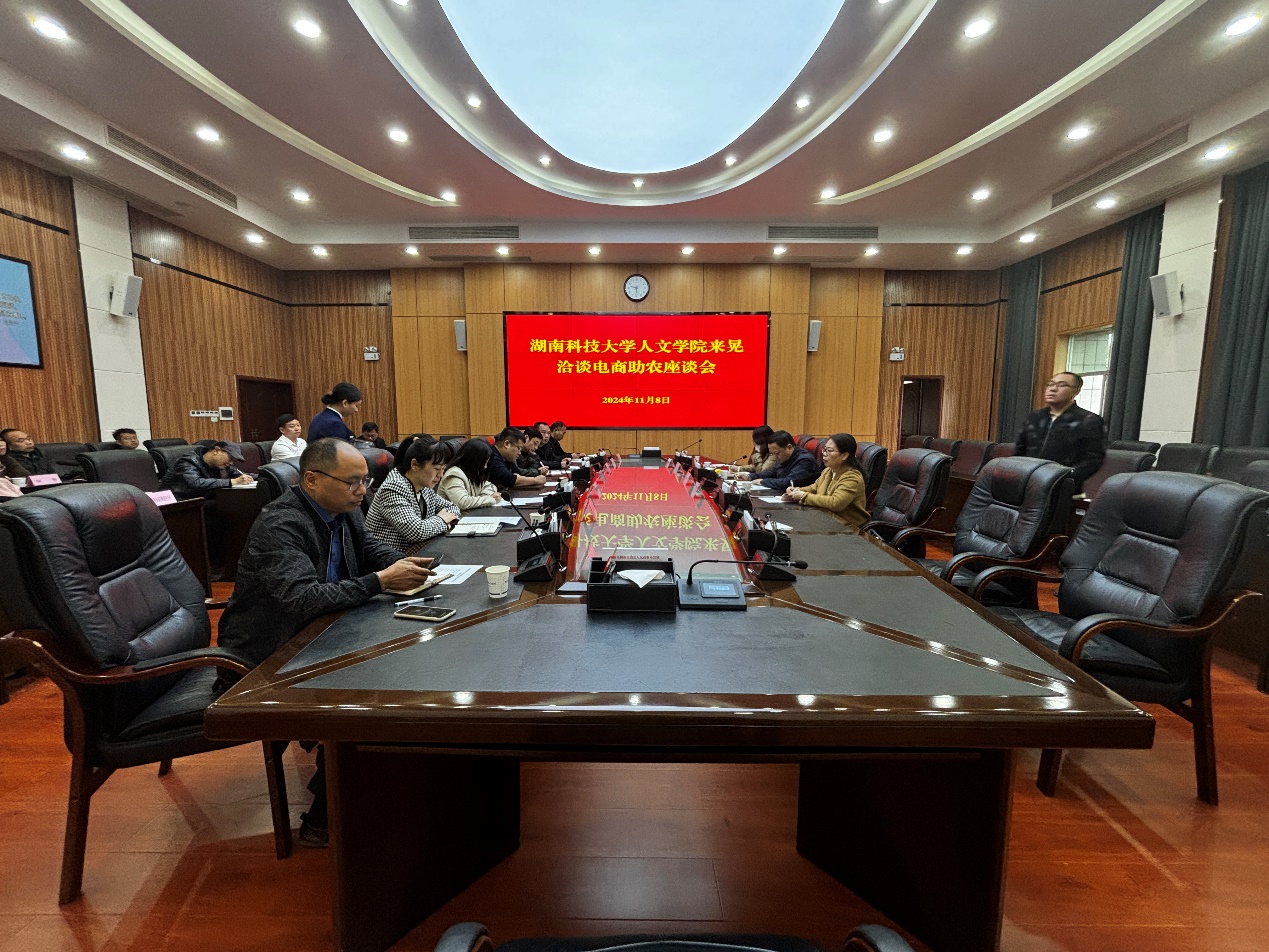 11月7日至8日,人文学院副院长袁星洁、新闻系主任刘艳凤、广告系主任曹佳骊、广告系副主任刘祥羽一行前往新晃县洽谈电商助农项目并走访调研多家代表性企业。新闻晃县副县长李强、农业农村局副局长汤琳菲等陪同调研,县政府办、县委宣传部等县直相关部门领导、中国邮政集团新晃分公司等相关公司负责人、汪玉晴等电商带货能人出席洽谈会。洽谈会由李强主持。李强对人文学院一行的到来表示热烈的欢迎,并对新晃县电商助农现状与当地的农优特产情况做了简要介绍。
