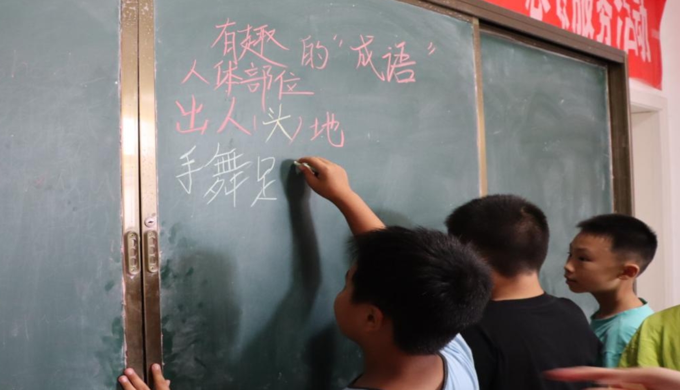 生妙笔之花,听童音之韵:人文学院三下乡志愿团推普课堂